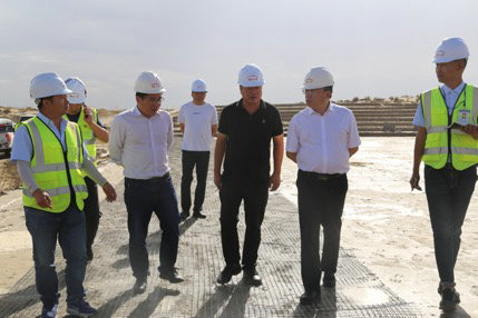 石龍海先后查看了取土場、風沙路基、鋼筋加工廠、拌合站等建設情況,提出在施工過程中要嚴格把控安全質量,嚴守“十條紅線禁令”。鋼筋加工采取先進的數控技術,一定要嚴格把控參數,讓生產滿足現場施工的進度。