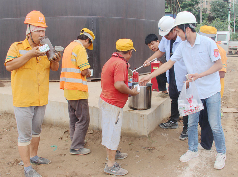 為農(nóng)民工兄弟送去綠豆湯消暑