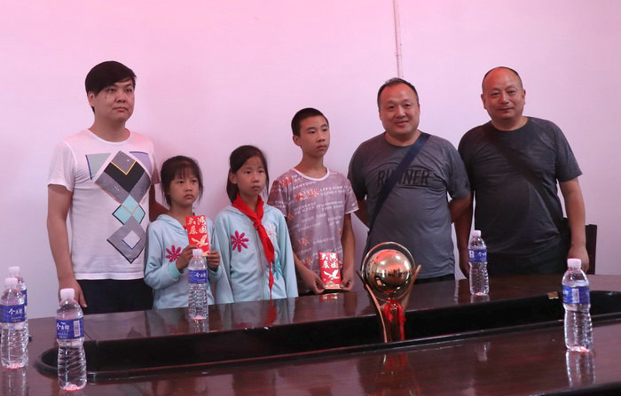 圖為杜強(右二)、郭立標(biāo)(左一)與三名受資助兒童合影 在捐資過程中,項目書記杜強,財務(wù)部長郭立標(biāo)分別寄語捐助對象,希望他們勤奮學(xué)習(xí),奮發(fā)向上,把自己的夢想融入中國夢,牢固樹立為中華崛起而讀書的遠大理想,珍惜大好時光,今后成為報效祖國,建設(shè)家鄉(xiāng)的有用之才。同時,鄉(xiāng)政府領(lǐng)導(dǎo)也希望受捐助的學(xué)生要感恩于心,不負期望,用優(yōu)異成績回報捐助者,他們的捐助不僅是物質(zhì)上的資助,更是精神上的鼓勵,生活上的關(guān)懷,學(xué)習(xí)上的支持,希望同學(xué)努力學(xué)習(xí),用知識改變自己的命運,做一個感恩知恩的人。受資助的學(xué)生對叔叔的樂善好施的善舉表示深深的感謝,表示今后要刻苦學(xué)習(xí),取得優(yōu)異的成績,不辜負叔叔們的期望。