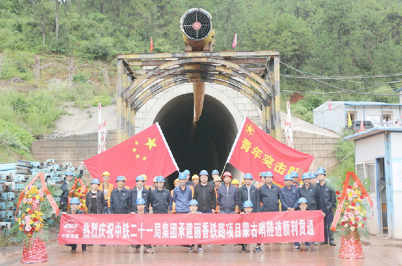 職工們在貫通后的蒙古哨隧道進口洞門處合影留念