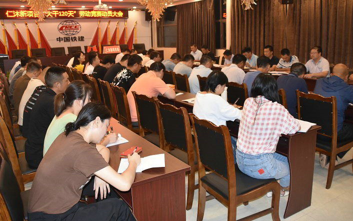 為統(tǒng)一思想,凝聚項目團隊力量,9月7日,中鐵二十一局三公司仁沐新項目召開“大干120天”勞動競賽動員會。項目部全體人員、工區(qū)負(fù)責(zé)人、工區(qū)技術(shù)主管、各施工隊負(fù)責(zé)人參加會議。會議由項目副書記陳濤主持。
