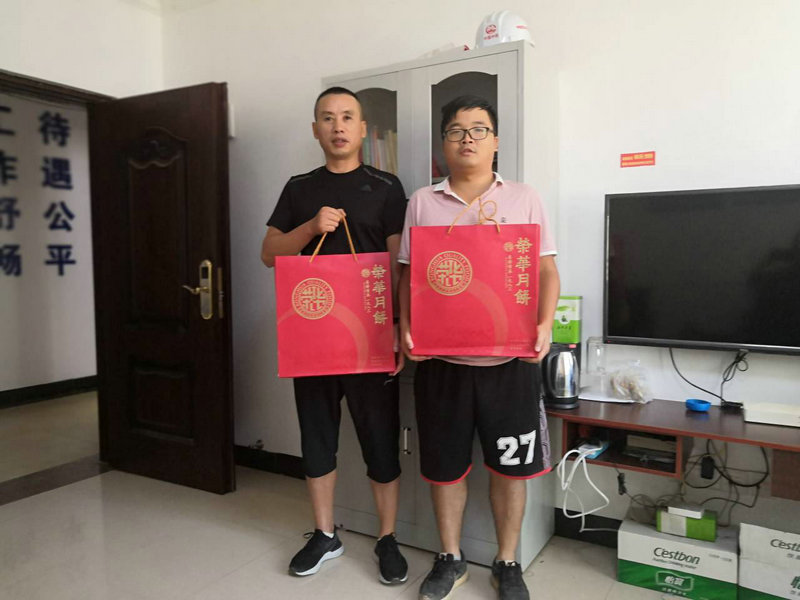 項(xiàng)目部陳書記代表項(xiàng)目部黨政工領(lǐng)導(dǎo)向所有員工及家屬致以節(jié)日問候!同事之間其樂融融,歡聚一堂。歡聲笑語(yǔ),此起彼伏。其間觥籌交錯(cuò),傳杯弄盞。更有“起座而喧嘩者,眾賓歡也!”。讓未能趕回家與家人團(tuán)聚的同事們充分感受到項(xiàng)目部這個(gè)“大家庭”的溫暖和濃濃關(guān)愛。家宴后項(xiàng)目部給項(xiàng)目員工及家屬發(fā)放了月餅和電影票。