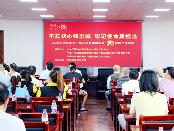 中國鐵路工程建設網江蘇江陰訊(通訊員 鄭建軍)9月24日,在熱烈慶祝新中國成立70周年之際,擔負江蘇南沿江城際鐵路6標段施工任務的中鐵十二局集團項目經理部黨工委應邀出席了與駐地江陰市申港街道東劉村“不忘初心鑄忠誠·牢記使命勇擔當”主題活動暨共建“黨員黨性體檢中心”的啟動儀式。