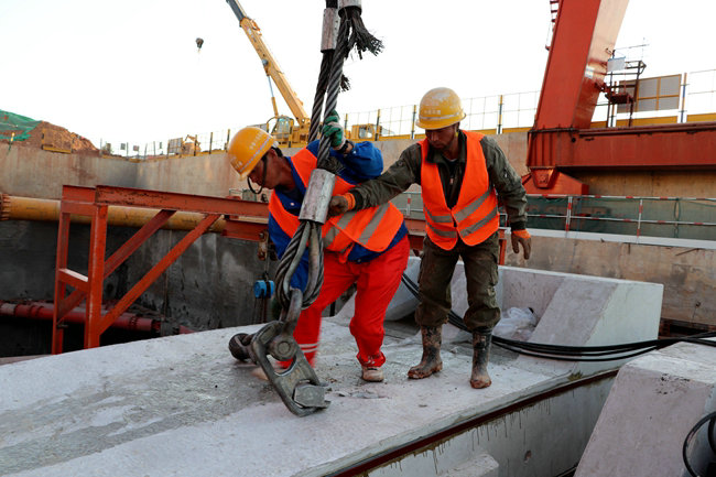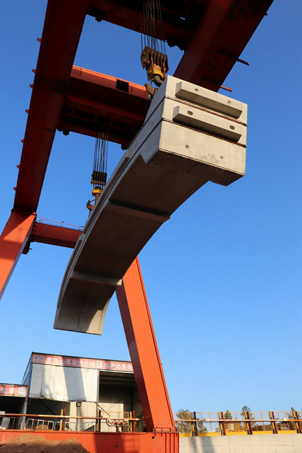 9月25日,17點(diǎn)30分,一片重達(dá)54.3噸、長(zhǎng)10.057米的混凝土預(yù)制件E塊,在80T+80T龍門(mén)吊的吊裝下,在現(xiàn)場(chǎng)技術(shù)人員的精心指揮下,精準(zhǔn)落座在拼裝臺(tái)車(chē)上,工人師傅迅即展開(kāi)調(diào)整就位。至此宣告,由中鐵十四局集團(tuán)承建的長(zhǎng)春地鐵2號(hào)線西延線捷達(dá)大路站預(yù)制裝配式車(chē)站拼裝順利完工。頓時(shí),鞭炮聲和歡呼聲在施工現(xiàn)場(chǎng)響成一片......