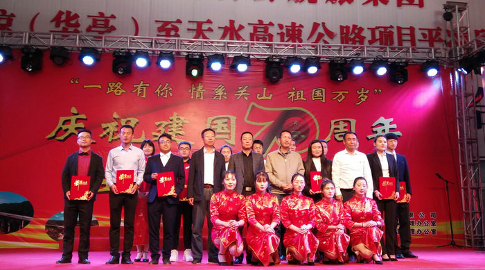 演職人員與平天、涇華高速項目辦領(lǐng)導(dǎo)合影 26日下午的文藝演出活動中,由平天項目職工根據(jù)項目真人真事自編自導(dǎo)的小品《祈愿樹》感動了在場的所有觀眾,最終在25個單位選送的30個節(jié)目中脫穎而出榮獲一等獎;歌伴舞《黨啊 親愛的媽媽》在主唱郭淑玲動人的美聲,蕩氣回腸,八位伴舞舞姿曼妙,她們都用各自不同的方式詮釋著對祖國母親的熱,最終榮獲二等獎;小美女胡柯的《太極功夫扇》及《雙節(jié)棍》剛?cè)峤Y(jié)合,令臺下觀眾嘖嘖贊嘆,獲得二等獎、三等獎的優(yōu)異成績;同時平天項目還獲得該次活動的優(yōu)秀組織獎。