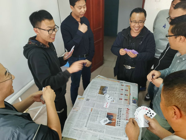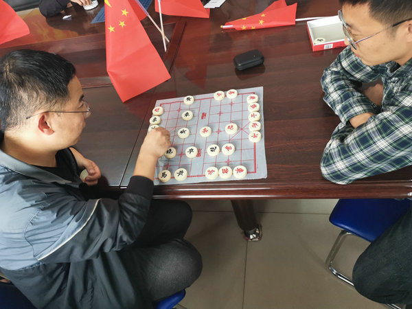 撲克競賽是大家喜聞樂見的游戲,三打三的“拍蒼蠅”項目和賽前精心準備的獎品更加吸引了眾多員工參與,比賽場上歡聲笑語從未間斷。象棋比賽則是運籌帷幄,謀劃千里的比賽項目,比賽中選手都屏氣凝神,但大腦卻異?;钴S,每一步都經(jīng)過周密的計算,通過娛樂比賽拉近了同事間的距離,加深了彼此之間的友誼。飛鏢比賽卻是技術含量較高的體育項目,平時喜歡該項運動的小伙伴此時派上了用場。賽場上每一鏢都穩(wěn)扎穩(wěn)打,飛鏢擲出選手們或慶祝、或沮喪、或默默握拳、或輕嘆搖頭,而圍觀的同事也頻頻用掌聲給予選手加油鼓勁,一個高分環(huán)往往會贏來場邊觀眾的陣陣喝彩。五子棋比賽更是此次活動的重頭戲,因為此項比賽更加大眾化,項目部全體員工都參與了此次比賽,棋盤上選手們都使出了洪荒之力,黑白子之間不斷變換,充滿著驚奇,稍有不慎,就滿盤皆輸,比賽一直持續(xù)了2個小時才落下帷幕。