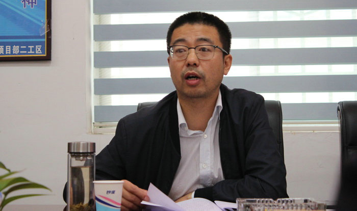 圖為公司副總經(jīng)理、總工程師呂劍為項(xiàng)目部黨員講黨課
