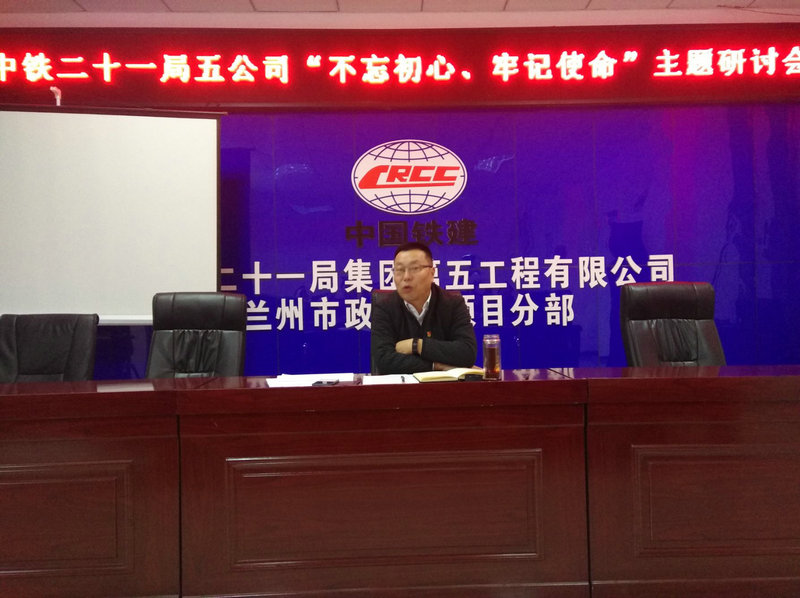 10月15日,中鐵二十一局五公司黨委副書記、總經(jīng)理王富武以“黨建工作”引領(lǐng)施工生產(chǎn),樹立“大成本”理念,改變承包模式,干好在建工程為主題在蘭州聯(lián)合黨支部進行“不忘初心、牢記使命”主題教育調(diào)研工作。
