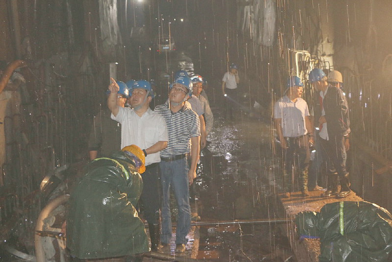 隧道嚴(yán)重滲水,領(lǐng)導(dǎo)和技術(shù)人員現(xiàn)場研究解決方案