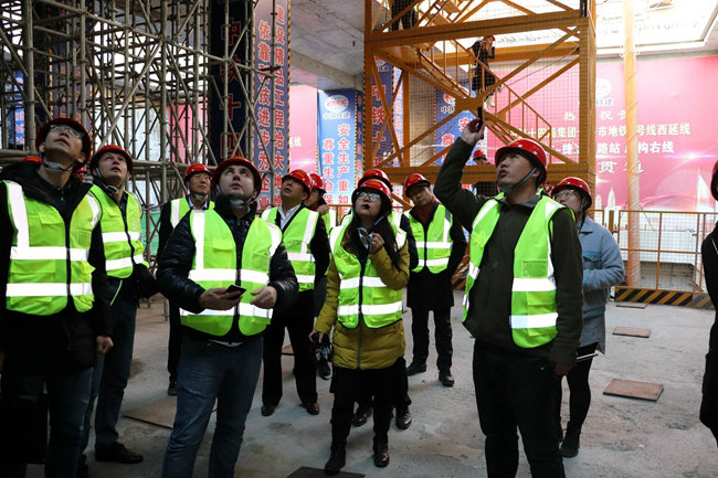 考察團(tuán)一行乘坐地鐵,先后參觀了已經(jīng)開通運(yùn)營的長春地鐵2號線西環(huán)城站、興隆堡站和雙豐站,參觀完運(yùn)營車站,考察人員又驅(qū)車來到正在建設(shè)的西湖站和十四局施工的西延線捷達(dá)大路站實地參觀考察,西延線項目技術(shù)負(fù)責(zé)人馬傳程在現(xiàn)場向考察團(tuán)一行詳細(xì)介紹了捷達(dá)大路裝配式拼裝車站的施工情況,檢查團(tuán)人員聽完介紹就興致勃勃地下到基坑中板,進(jìn)行現(xiàn)場實地考察,只見他們一邊向技術(shù)人員咨詢了解,一邊舉起手機(jī)頻頻拍照。在離開現(xiàn)場的時候,他們都紛紛伸出大拇指,為中國技術(shù)點(diǎn)贊!