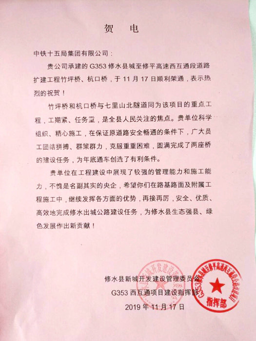修水G353項目一座隧道已經(jīng)貫通,正進行收尾施工,兩座橋的架通,為全標段實現(xiàn)年底通車目標掃除了障礙。
