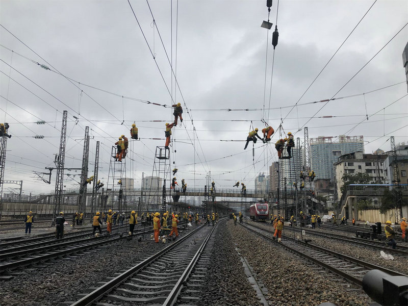 面對(duì)中國(guó)鐵路廣州局歷史上罕見(jiàn)的連續(xù)天窗點(diǎn),11月以來(lái),京廣改造項(xiàng)目部員工不管是白天還是黑夜,不管是刮風(fēng)還是下雨,奮戰(zhàn)一線,緊張施工,搶抓進(jìn)度,面對(duì)持續(xù)寒潮降雨的天氣打擊,京廣改造項(xiàng)目部拿出“背水一戰(zhàn)”的勇氣和決心,進(jìn)一步堅(jiān)定信心,提高認(rèn)識(shí)、倒排工期、掛圖作戰(zhàn)、雨天不停工、夜晚加班,形成“態(tài)勢(shì)倒逼認(rèn)識(shí)、目標(biāo)倒逼進(jìn)度、督查倒逼落實(shí)”的強(qiáng)大力量,快速推進(jìn)工程建設(shè)。