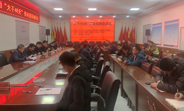 勞動競賽動員會現(xiàn)場 魏總對本次勞動競賽活動提出七點要求:一是要統(tǒng)一思想,提高認識,堅定永爭第一的信心,開好局、起好步、謀好篇,為2020年快速形成生產規(guī)模和進度,全面引領全線奠定堅實基礎;二是統(tǒng)籌協(xié)作,合理安排,確保節(jié)點目標任務的完成;三是群防群治,常抓不懈,全面落實安全生產責任;四是規(guī)范施工,精細管理,嚴格抓好施工質量,為打造亮點、形成品牌,創(chuàng)建“品質工程”、“綠色工程”打下堅實的基礎;五是強化服務,盡職盡責,確保后勤保障到位,牢固樹立“盈利光榮、虧損可恥”的理念,爭創(chuàng)“集團公司、股份公司責任成本管理示范項目”;六是加強黨建,強化宣傳,努力助推競賽活動,確保大干期間全體參建人員“在狀態(tài)、有激情、敢擔當、重落實、守規(guī)矩”;七是狠抓落實,嚴格考核,切實調動積極性,為干好項目、干贏項目,實現(xiàn)項目創(chuàng)譽創(chuàng)效雙豐收。