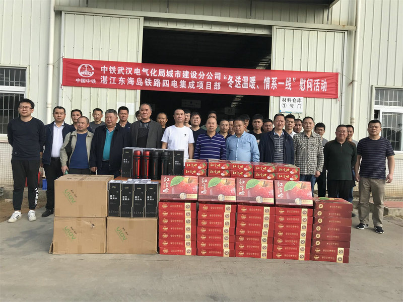 在2020年元旦、春節(jié)來臨之際,基層施工一線員工的冷暖牽動著公司領(lǐng)導(dǎo)的心。12月18日上午,中鐵武漢電氣化局城市建設(shè)分公司黨委書記何明全、黨群部部長周岳、黨群部劉南、紀(jì)委監(jiān)察審計部副部長唐輝一行四人來到湛江東海島項目部,為堅守一線的員工送去慰問品和新春祝福。