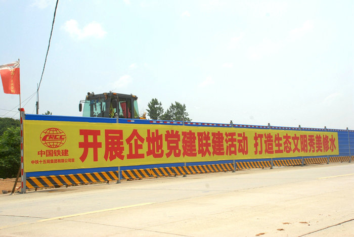 該公司承建的修水G353公路擴(kuò)建工程全長9.188公里,是革命老區(qū)修水縣的重點(diǎn)工程、民生工程,是鏈接湖北咸陽、湖南韶等地唯一的通道,因原二級公路無法滿足猛增的車流量,交通擁堵讓出行于兩地的60萬人苦不堪言,不得已在將此路按一級標(biāo)準(zhǔn)進(jìn)行擴(kuò)建,備受各級領(lǐng)導(dǎo)和百姓關(guān)注。為早日實(shí)現(xiàn)全縣80多萬人的大交通夢想,業(yè)主壓縮工期半年以上,要求春節(jié)前必須達(dá)到通車條件,工期壓力非常大。為了履行企業(yè)對業(yè)主的安全、進(jìn)度、質(zhì)量、環(huán)保等方面的承諾,項(xiàng)目部打破常規(guī),不斷優(yōu)化施工方案、科學(xué)合理配置人力和設(shè)備資源、黨政工聯(lián)合開展兩輪勞動競賽,調(diào)動一切積極因素的基礎(chǔ)上,項(xiàng)目黨支部緊緊圍繞施工生產(chǎn)深入開展創(chuàng)建“紅旗責(zé)任區(qū)”、“黨員先鋒崗”、“做優(yōu)秀黨員”、“企地聯(lián)建”、書記講黨課等活動,將項(xiàng)目的管理和施工鏈條層層加碼、組合拳不斷發(fā)力,讓各項(xiàng)活動成為激活員工內(nèi)在動力的“加油站”,凝心聚力的助推器。與此同時,黨支部在企業(yè)文化建設(shè)中推陳出新,以文化之美、文化之魅力教育人、鼓舞人、引導(dǎo)人、塑造人。從項(xiàng)目駐地到施工現(xiàn)場,思想內(nèi)涵豐富、傳承央企安全文化、質(zhì)量文化、廉潔文化的標(biāo)語、標(biāo)牌、警示語等琳良滿目,構(gòu)成一道靚麗的風(fēng)景線。黨支部還組織黨員干部采寫近400篇現(xiàn)場管理、安全文明、綠色施工等方面的典型做法的新聞,既展示了企業(yè)的綜合實(shí)力,也為企業(yè)揚(yáng)了名。