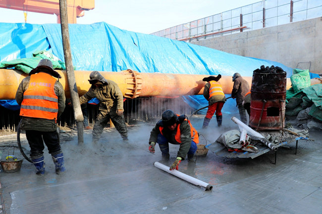 近期長春地區(qū)雨雪天氣頻繁,氣溫驟降。為確保工期,項目部積極組織廣大員工開展冬期施工,員工們發(fā)揚當(dāng)年鐵道兵戰(zhàn)天斗地、兩續(xù)作戰(zhàn)的大無畏精神,頂著零下20多度的嚴(yán)寒,英勇頑強地奮戰(zhàn)在寒風(fēng)凜冽的施工現(xiàn)場。員工們憑借堅強的意志、辛勤的汗水和心血,克服常人難以克服的困難,風(fēng)雨無阻,晝夜兼程,經(jīng)過近36小時的連續(xù)奮戰(zhàn)和共同努力,終于圓滿地完成了892m³混凝土的澆筑任務(wù),至此宣告:汽車公園站至捷達(dá)大路站區(qū)間盾構(gòu)接收井安全順利封頂,為下步盾構(gòu)機按期出洞,贏得了寶貴時間,為全線按期開通奠定了堅實的基礎(chǔ)。