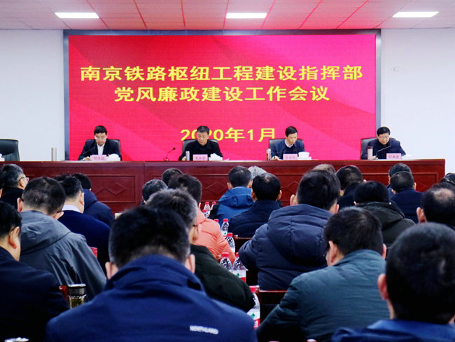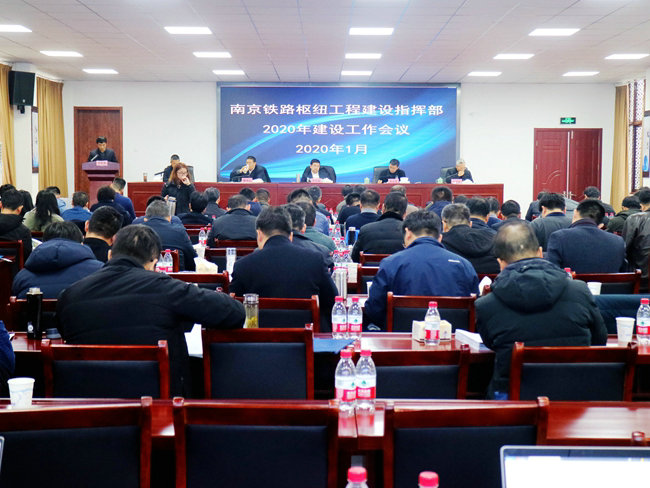 2020年建設工作會議會場 江蘇南沿江城際鐵路自京滬高鐵南京南站的寧安場,途經(jīng)南京江寧區(qū),鎮(zhèn)江句容市,常州金壇區(qū)、武進區(qū)和經(jīng)濟開發(fā)區(qū),無錫江陰市,蘇州張家港市、常熟和太倉等11個縣市(區(qū)),終至在建的滬通鐵路(上海—南通)太倉站。新建正線長度278.53公里,設計時速為350公里/小時。全線共設南京南-句容-金壇-武進-江陰-張家港-常熟-太倉等8個車站,并在太倉經(jīng)滬通鐵路一期接入上海。中鐵十二局集團南沿江城際鐵路項目經(jīng)理部承擔常州特大橋橋尾至跨京滬高速特大橋7號墩(含))正線工程,全長27.601公里。主要工程量:路基1.125公里,區(qū)間及站場路基土石方312686立方米;橋梁26476.44延長米/5座(不含框架橋),橋梁26476.44延長米/5座(不含框架橋),其中連續(xù)梁4504延長米/24聯(lián),框架橋285.842延長米/6座,框架涵180.52橫延米/2座。江陰制梁場制架箱梁785孔;江陰鋪軌基地全線鋪新軌604.41鋪軌公里,鋪道岔123組;江陰站還建站房9370.94平方米。標段內(nèi)控制性工程為跨北塘河357號-360號墩連續(xù)梁、跨戚月路363號-366號墩連續(xù)梁,重難點工程為跨京杭大運河12號-15號墩連續(xù)梁、跨滬寧城際18號-21號墩轉體連續(xù)梁、跨錫澄運河516號-519號墩連續(xù)梁。