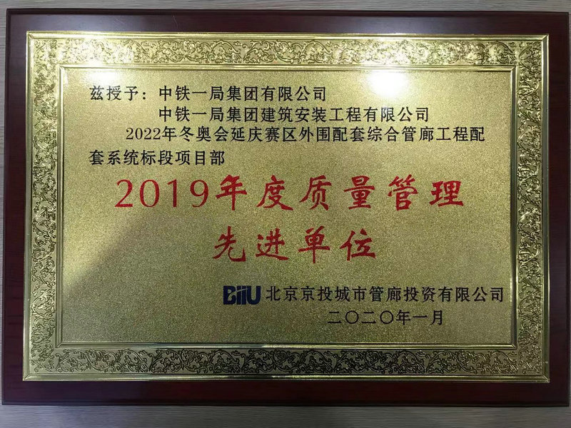 (北京訊)1月15日,北京京投城市管廊投資有限公司在北京機關召開2019年度安全質量工作表彰大會。會上,對京投管廊公司所屬的2022年北京冬奧會延慶賽區(qū)外圍配套綜合管廊工程、北京新機場高速公路地下綜合管廊工程建設過程中涌現(xiàn)出的安全、質量管理先進集體和先進個人進行了表彰。中鐵一局建安公司北京冬奧會延慶賽區(qū)外圍配套綜合管廊工程項目部成為3家質量管理先進單位之一,并且是唯一入選的機電設備安裝施工標段。