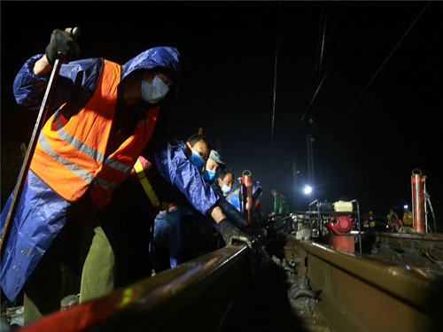 3月9日19時(shí)55分,成都鐵路局集團(tuán)管內(nèi)的偏遠(yuǎn)小站迎來了一批特殊的人群,他們“掩頭遮面”,手持“利刃”,佇立在傾盆而瀉地大雨中靜靜等候。5分鐘后,隨著一聲響亮的“沖鋒號”響起,蓄勢多時(shí)的“官兵”們瞬時(shí)沖向了“戰(zhàn)場”,一時(shí)間,線路上機(jī)械轟鳴,號聲連天。自此,由中鐵一局新運(yùn)公司承擔(dān)的渝懷二線鐵路官莊車站擴(kuò)能改造工程“戰(zhàn)役”徹底打響。