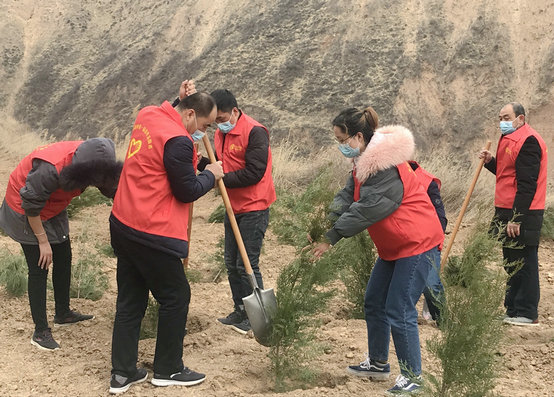 金石龍禧臺項目部組織職工來到黃河西岸山上,進行義務(wù)植樹活動,在植樹點,大家兩人一組,認真做好植樹的每個細節(jié),互相幫助著將一株株側(cè)柏栽入土中,個個熱情洋溢,干勁十足,忙的不亦樂乎。一個多小時后60余株側(cè)柏樹傲然挺立在黃河西岸山上,展現(xiàn)出勃勃生機。大家在植樹現(xiàn)場紛紛表示,希望側(cè)柏樹茁壯成長,希望疫情早日過去,英雄早日歸來。