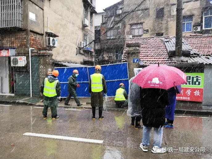 2月14日,項(xiàng)目部在得到駐地所在街道(武昌區(qū)紫陽(yáng)街道)相關(guān)部門(mén)防控人手不夠的消息后,主動(dòng)請(qǐng)纓,援助街道所屬九個(gè)社區(qū)封閉施工任務(wù)。此時(shí),項(xiàng)目部已為大家配齊配全了防疫用品,一切準(zhǔn)備就緒。在得到武昌區(qū)相關(guān)部門(mén)指令后,項(xiàng)目部留守組5名管理人員帶領(lǐng)10名作業(yè)工人于15日攜帶機(jī)具奔赴現(xiàn)場(chǎng)展開(kāi)施工。過(guò)程中突遇大雪,援建人員冒著雨雪,迎著大風(fēng)嚴(yán)寒,咬緊牙根,全力以赴的進(jìn)行圍擋施工。在大家的共同努力下,歷時(shí)7個(gè)小時(shí),順利完成了紫陽(yáng)街道所屬9個(gè)社區(qū)共計(jì)40余處出入口封閉施工任務(wù)。為助推武漢市全面加強(qiáng)社區(qū)疫情防控做出了積極貢獻(xiàn)。
