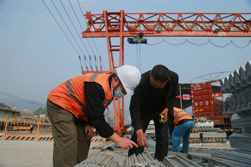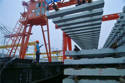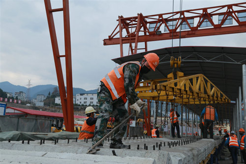 (譚帥)3月23日,渝懷鐵路涪秀二線中鐵一局項目鋪架基地的廠區(qū)內(nèi)到處都是熱火朝天的生產(chǎn)場景,龍門吊,撬棍,電動扳手,鋼尺等系列“利器”在工人師傅們的精心操縱下,有序施展著十八般“武藝”。