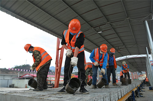 當(dāng)日,在焊花的映襯下,胸口前的鮮紅色黨徽顯得格外醒目,老黨員黃雪嶺正緊盯著橋面系材料的加工生產(chǎn)。復(fù)工復(fù)產(chǎn)以來,項目黨工委將全體黨員干部定位到管內(nèi)各個作業(yè)單元,全面把控施工質(zhì)量和作業(yè)安全,并牽頭落實系列生產(chǎn)攻堅決策,著力正點完成既定的目標(biāo)任務(wù)。