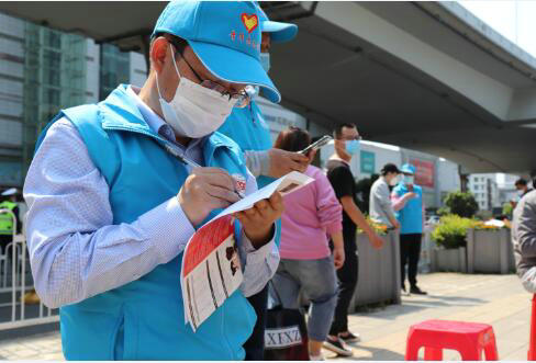 圖為項(xiàng)目經(jīng)理董武俊獻(xiàn)血前填寫(xiě)登記