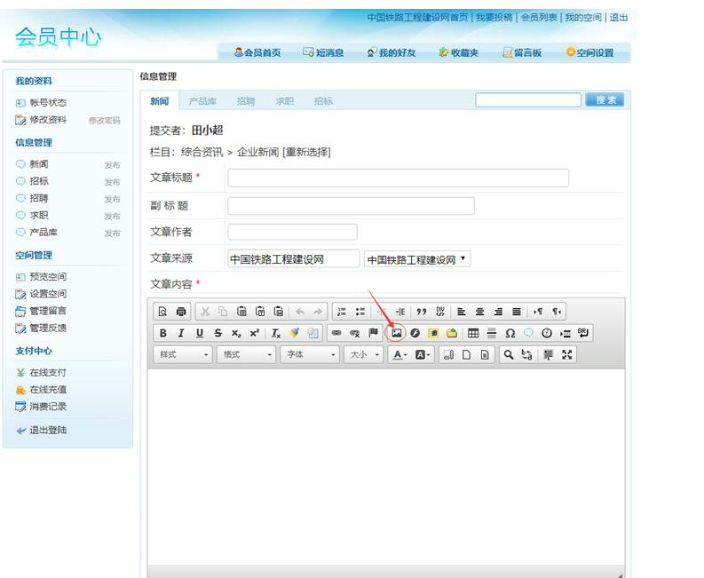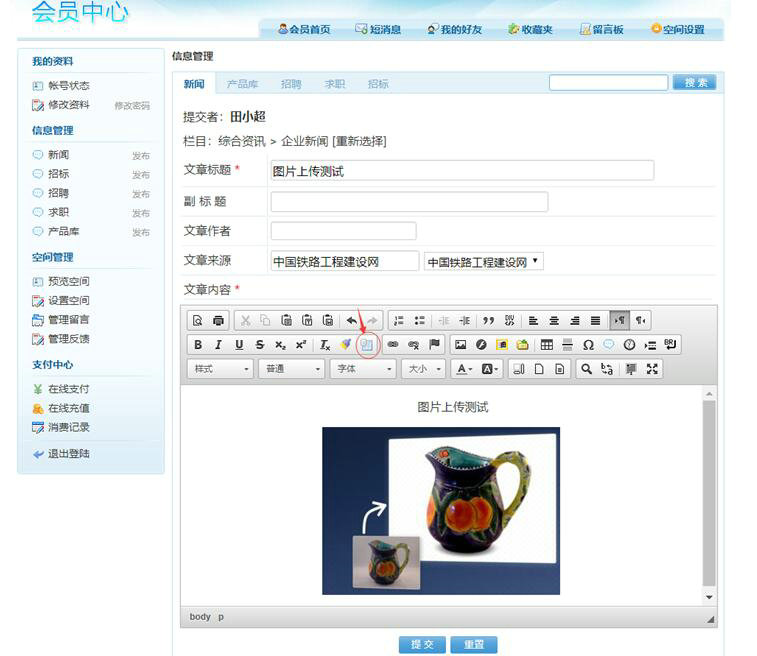 一、點擊文章內(nèi)容里編輯器的“圖像”圖標,如下圖: