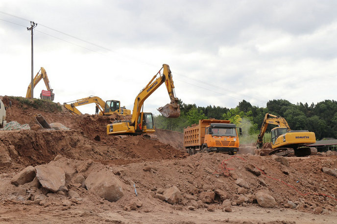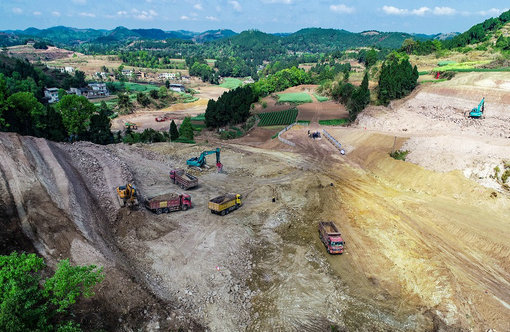 TJ-5標(biāo)射洪互通路基挖方、填方施工場景(孫平安攝)