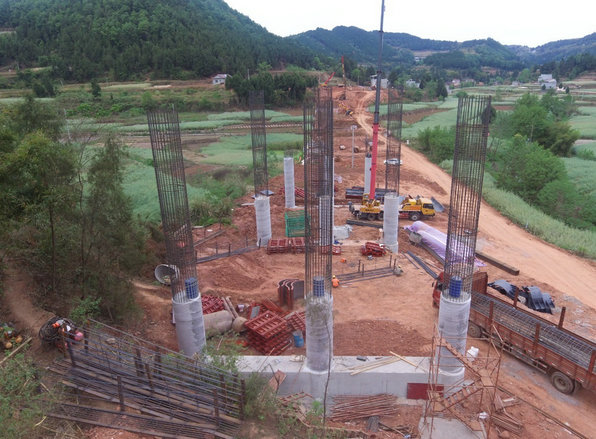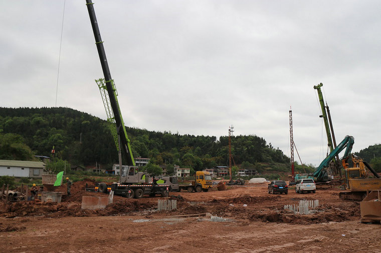 TJ-5標(biāo)射洪互通橋梁樁基、墩柱施工場景(孫平安攝)
