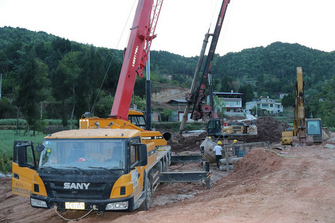 TJ-6標(biāo)沱牌互通橋梁樁基工程施工場景(孫平安攝)