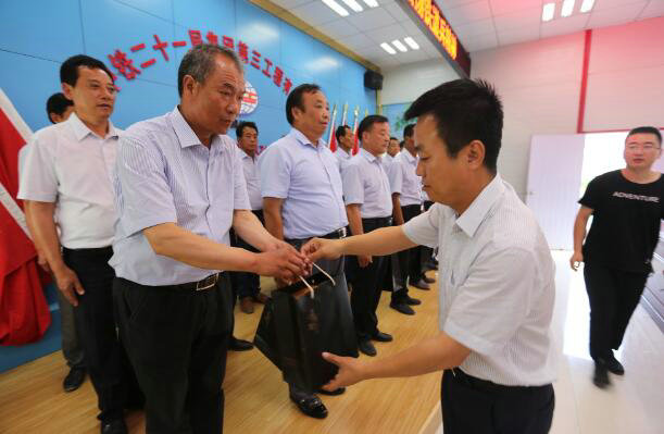 31日中午,一場(chǎng)酣暢淋漓的雷電暴雨過后,位于陜、甘、寧交界處的甘肅省華亭縣雨后天晴,湛藍(lán)的天空下涼風(fēng)習(xí)習(xí),令人心曠神怡。分散在各工區(qū)的24名鐵道兵老同志身著統(tǒng)一的工裝,精神煥發(fā)按時(shí)來到項(xiàng)目部,參加由項(xiàng)目部組織的中國(guó)人民解放軍建軍91周年、暨鐵道兵誕辰70周年、鐵道兵兵改工35周年紀(jì)念活動(dòng)。