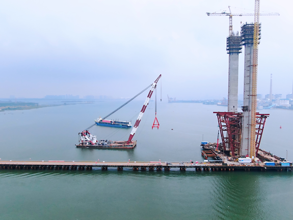 調(diào)順跨海大橋首片主梁成功架設(shè) 吹響“大干100天”沖鋒號(hào)