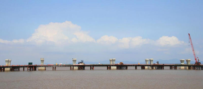 濱?;ネㄈL9705米,由主線拼寬橋和4座金塘大橋拼寬橋和8座匝道橋組成,工藝復雜、工序繁鎖,且3次上跨、4次下穿日均車流量達6萬輛的金塘大橋,海上作業(yè),施工難度大,潛在的安全隱患多,備受各方高度關注。在主線拼寬橋施工中,該項目部推出棧橋先行、樁基與承臺緊隨、墩身“壓軸”的分步驟、工序銜接緊密、多點擊破、全力合圍等“組合拳”,為贏得施工主動、圓滿完成主線拼寬橋80座橋墩發(fā)揮了作用。與此同時,項目部實行班子成員分工負責制,責、權、利與安全質量、進度產(chǎn)值和環(huán)保掛鉤,獎罰嚴明,對履職不力、責任心不強者,調整其崗位,對其他管理人員也如此。其次,在每季度勞動競賽總結評比中,按照競賽方案,組織部門負責人以上領導對各施工隊進行打分,排在前5名的單位給予重獎,凡完不成任務者,將受到重罰。