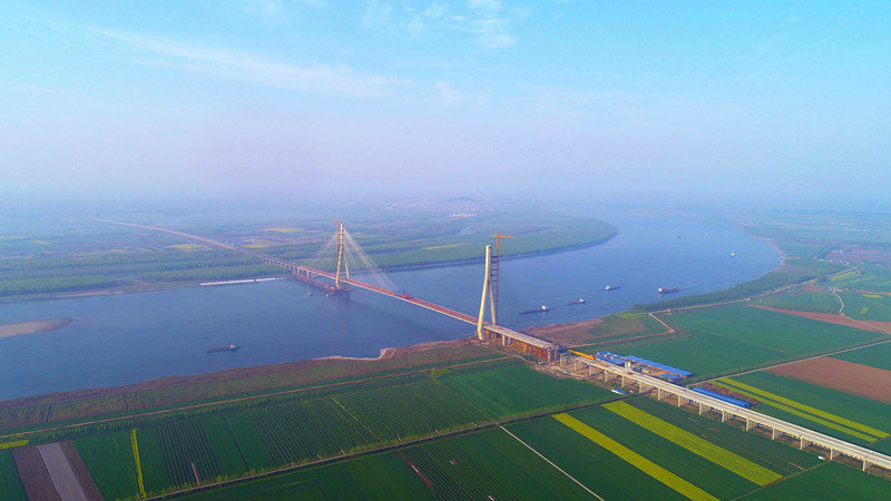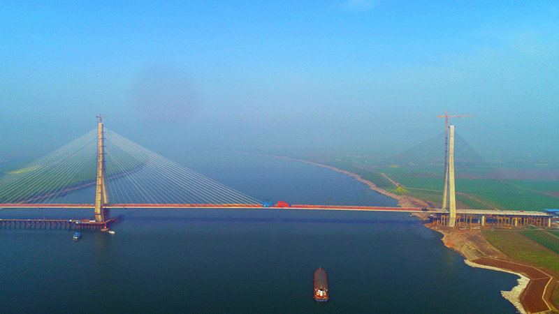 石首長江大橋全長12.2公里,為雙塔斜拉橋,一跨820米飛躍長江天塹,大橋跨度位居世界第七,綜合施工難度位居世界同類橋梁前列。