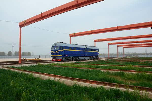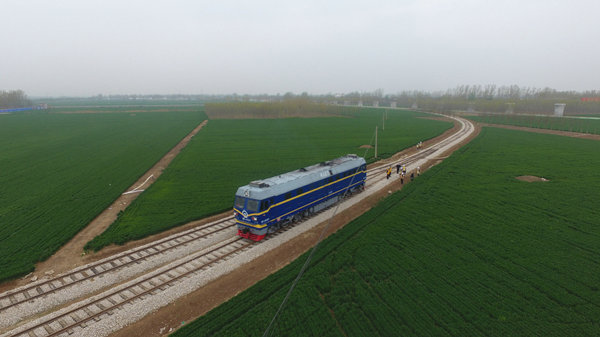 4月2日上午,一列DF4內(nèi)燃機(jī)車緩緩駛進(jìn)魯南高鐵項(xiàng)目薛家莊鋪軌基地,開始對場內(nèi)線路進(jìn)行機(jī)車軋道作業(yè)。