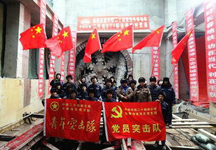 萬(wàn)事俱備,大干風(fēng)起云涌!由項(xiàng)目書(shū)記朱月根、盾構(gòu)一隊(duì)書(shū)記劉桂忠?guī)ьI(lǐng)的“黨員突擊隊(duì)”;陳石、槐景博、汪浩帶領(lǐng)的“青年突擊隊(duì)”盡展風(fēng)采。盾構(gòu)機(jī)始發(fā)后,朱月根、劉桂忠并成了“后勤保障部長(zhǎng)”,他們將形之有效的思想政治工作送到職工宿舍、施工現(xiàn)場(chǎng),把職工的精神氣兒提振得烘熱高漲。