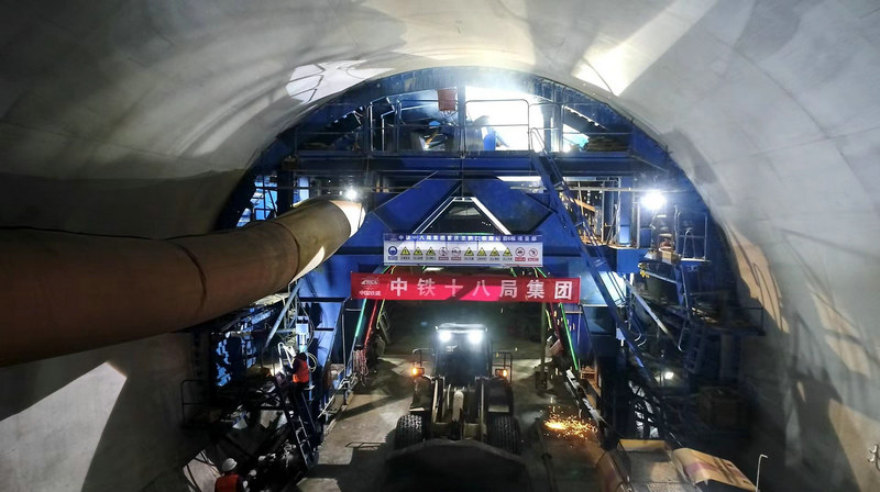 中鐵十八局集團(tuán)隧道公司負(fù)責(zé)施工的渝湘高鐵重慶至黔江段站前6標(biāo)李家灣1號隧道貫通現(xiàn)場(田緣圓 攝)