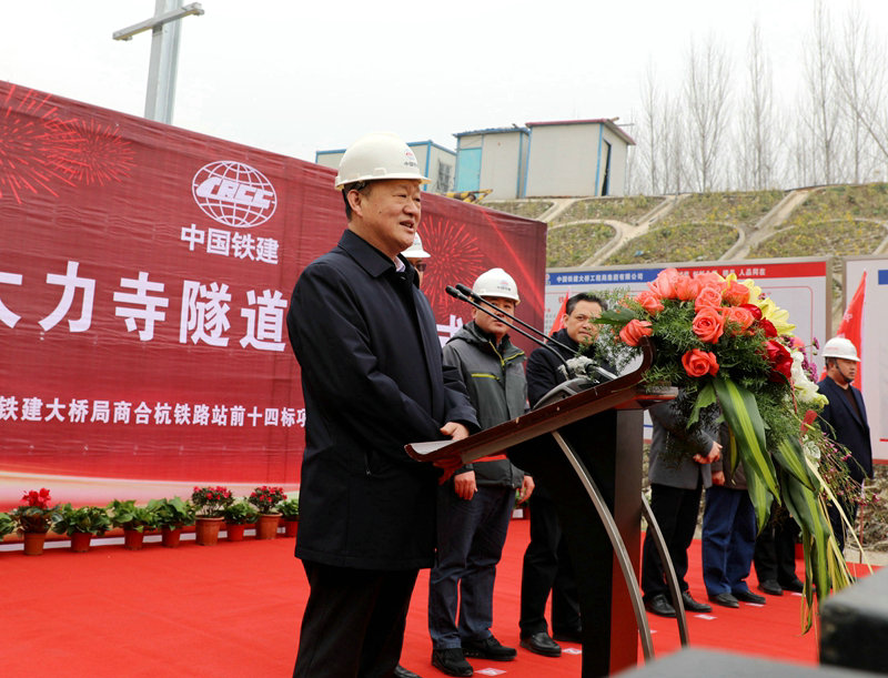 在稍早舉行的貫通儀式上,巢湖市常務(wù)副市長夏群山在發(fā)言中對新大力寺隧道貫通表示了祝賀,對中鐵建大橋局建設(shè)者多年來對巢湖經(jīng)濟(jì)社會發(fā)展所做貢獻(xiàn)給予高度評價;集團(tuán)公司工管中心主任兼項(xiàng)目經(jīng)理王濤、三公司總經(jīng)理周冠南分別在講話中對建設(shè)者的辛勤付出表示了感謝;最后集團(tuán)公司副總經(jīng)理吳煥通宣布新大力寺隧道正式貫通。