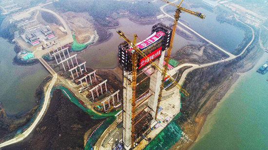 1月29日,隨著最后一方混凝土泵送至148米高索塔上橫梁,中鐵建大橋工程局集團棋盤洲長江公路大橋北索塔成功封頂。建設單位湖北棋盤洲長江公路大橋有限公司、黃岡市協調指揮部、蘄春縣政府、長江武漢航道局相關領導以及集團橋梁指揮部副指揮張耀、中鐵建大橋工程局集團一公司執(zhí)行董事、黨委書記王學民參加了封頂儀式。