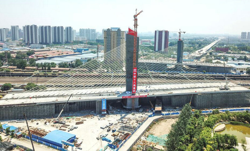 1、中鐵十八局集團(tuán)參建的保定樂(lè)凱大街南延工程轉(zhuǎn)體斜拉橋(徐輝 伍振 攝)