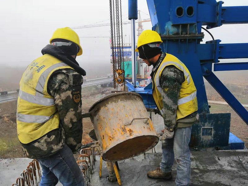 元旦過后,濟寧地區(qū)也迎來新年初雪。從1月5日下午便開始落雪,白雪皚皚給大地披上了銀裝,也給工地上那兩套鋼鐵巨獸般的運架設(shè)備添上一層厚厚的羽絨棉被。颯颯的風(fēng)雪聲中冬季的濟寧分外凜冽,在零下十多度的嚴(yán)寒中,為護航高鐵暢通,分部員工沒有絲毫松懈。元月初此時正值魯南高鐵項目實現(xiàn)年度架梁目標(biāo)最后奮起一躍的時刻,為在春節(jié)前順利完成年度箱梁架設(shè)任務(wù),項目部全體員工凝聚在“全力以赴保安全、爭分奪秒保進度、排除萬難保質(zhì)量”的信念下,寒冬臘月不停歇,堅守崗位,頂著數(shù)九寒天的凜冽寒風(fēng),齊心協(xié)力打響春節(jié)前箱梁架設(shè)攻堅戰(zhàn)。