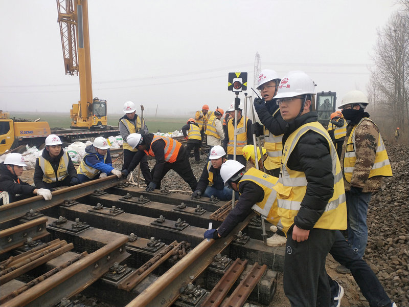 12月17日,魯南高鐵項目鋪軌基地聯(lián)絡(luò)線與梁寶寺煤礦專用鐵路接軌施工,天氣寒風(fēng)刺骨,像針一樣穿透心靈,這鬼天氣,路邊的行人已經(jīng)絕跡了,飛鳥,走獸,消失的無影蹤。經(jīng)過現(xiàn)場90人240分鐘的奮戰(zhàn),魯南高鐵項目鋪軌基地順利完成梁寶寺煤礦專用鐵路插鋪無尖軌道岔施工任務(wù)。數(shù)九寒天,施工現(xiàn)場陣陣朔風(fēng)透骨寒,作業(yè)人員穿戴齊全,按照事先分配好的工作密切配合,有條不紊的完成各道工序,拆軌裝軌、勻砟整修,整個施工過程,全體作業(yè)人員發(fā)揮了路橋人特有的能吃苦,能戰(zhàn)斗,能奉獻,能打硬仗的工作作風(fēng),以實際行動出色的完成了道岔插鋪任務(wù)。