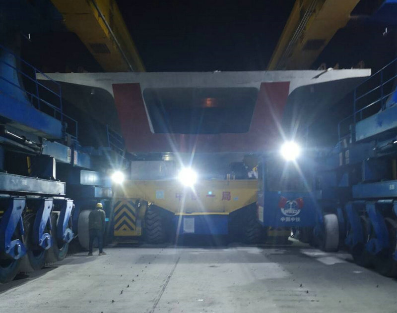 小里程方向架梁任務(wù)順利完成后,需要對架橋機進行轉(zhuǎn)體調(diào)頭作業(yè),繼續(xù)完成大里程方向箱梁架設(shè)。運架設(shè)備轉(zhuǎn)體調(diào)頭耗時耗力,項目部組織夜晚值班人員雙班倒,最大程度降低設(shè)備調(diào)頭時間。漆黑的夜里刺骨的風(fēng),穿著臃腫包裹嚴(yán)嚴(yán)實實的夜間作業(yè)人員在搖曳的燈光下隨著運架設(shè)備緩緩向著梁場方向返回,三九嚴(yán)寒,滴水成冰。凌晨4時,運架設(shè)備在經(jīng)過18個小時的長途跋涉下順利返回梁場。此時,在場的所有人雙眼都充滿了血絲,這些寒夜中的身影,雖然被凍得瑟瑟發(fā)抖,依然沒有絲毫懼色,而是堅持到底。參與值班員工在零下十幾度的天氣中加班加點,超負(fù)荷工作。以忘我的精神、飽滿的熱情、高昂的斗志,全面加快架梁施工進度。
