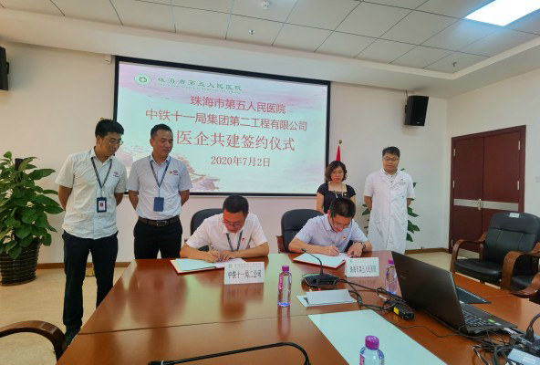 7月2日上午,中鐵十一局集團(tuán)第二工程有限公司珠海市鶴港二期項(xiàng)目部與珠海市第五人民醫(yī)院舉行醫(yī)企共建和黨企共建簽約儀式。珠海市第五人民醫(yī)院副院長(zhǎng)、黨委副書記黃裕存,紀(jì)委書記,黨辦主任白晶、及五院相關(guān)人員、項(xiàng)目黨工委書記陸中剛及項(xiàng)目相關(guān)人員參與本次活動(dòng)。