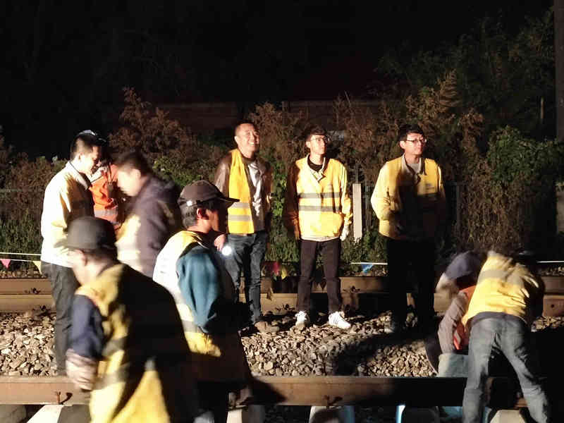 當(dāng)落日的余輝已盡,當(dāng)喧囂的車流豐富,軌道工區(qū)卻是剛剛端起飯碗。冬冷夏燥的板房?jī)?nèi)吳佰峰和馬鐵、孫海龍等人整理著當(dāng)日的工作日志,研究著第二天的施工細(xì)節(jié),如何注意安全,如何更有效地安裝扣件……