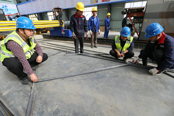 圖為生產(chǎn)蓋梁鋼筋籠骨架記者在現(xiàn)場(chǎng)看到,拌合站分為生產(chǎn)區(qū)、辦公區(qū)、生活區(qū),布局合理,場(chǎng)站建設(shè)標(biāo)準(zhǔn)高,辦公室、宿舍都安裝有空調(diào),還有工地浴室,晾衣棚,員工工作、生活環(huán)境舒適。在施工現(xiàn)場(chǎng)摸爬滾打20年的楊鵬濤深知,拌合站地處偏僻山區(qū),娛樂活動(dòng)相對(duì)較少難免寂寞,要讓員工有旺盛的精力投入到工作,一定要把伙食搞好,他在食堂管理上下足了功夫。在建拌合站廠房時(shí),就考慮到一、二工區(qū)、鋼筋加工廠人員在拌合站食堂就餐問題。除食堂應(yīng)有的硬件設(shè)施外,聘請(qǐng)技術(shù)精湛的川廚,既能做可口的川菜,又能做各種花樣的面食,滿足南方、北方人的口味。