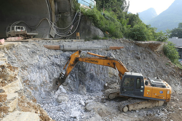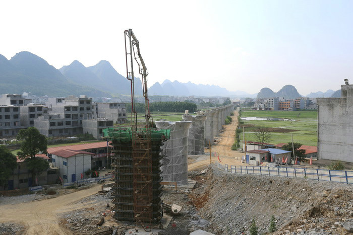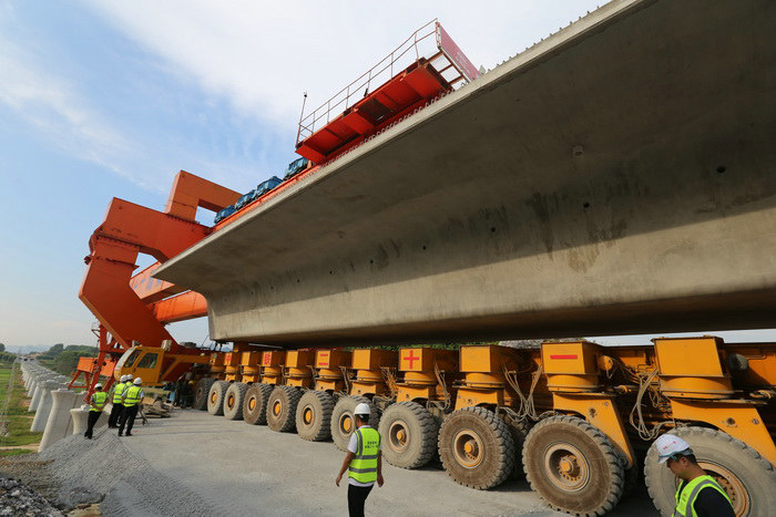 圖為運梁車行駛在路基上在我國的西南地區(qū)廣西、貴州、云南等地,廣泛分布著一種特殊地質結構——喀斯特地質,這是大自然鬼斧神工的杰作。但在工程施工領域,喀斯特地質被公認為“世界級施工難題”。