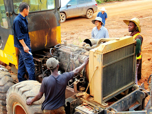 工程開工后,孫金輝帶人日夜組織,很快建立起了拌合站,組織各種機(jī)械設(shè)備進(jìn)場(chǎng)。根據(jù)國外工程項(xiàng)目的設(shè)備管理模式,各種大型機(jī)械設(shè)備均需到租賃,維修保養(yǎng)則由施工單位負(fù)責(zé)。由于所租賃的老舊機(jī)械設(shè)備比重大,屬地雇員責(zé)任心普遍欠缺等原因,導(dǎo)致機(jī)械設(shè)備的完好率、出勤率一度很低。“個(gè)別屬地雇員不能認(rèn)識(shí)到機(jī)械設(shè)備對(duì)工程進(jìn)度的重要性,簡單的以工時(shí)換取工資,甚至?xí)萌錾匙?、裝泥土、填爛布等行為毀損機(jī)械。”說起賴以怠工、故意損毀設(shè)備的行為,孫金輝十分苦惱。不同于國內(nèi),可以借助于技術(shù)支持和廠家服務(wù),國外項(xiàng)目的設(shè)備管理需要獨(dú)辟蹊徑,自己想辦法才能解決。